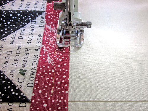 - Ditch stitch along both sides of all the sashing. We recommend a Walking or Even Feed foot or engage your machine’s built-in fabric feeding system.