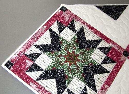 - Free-motion quilt within the solid white of each inset triangle. We used a feather design.