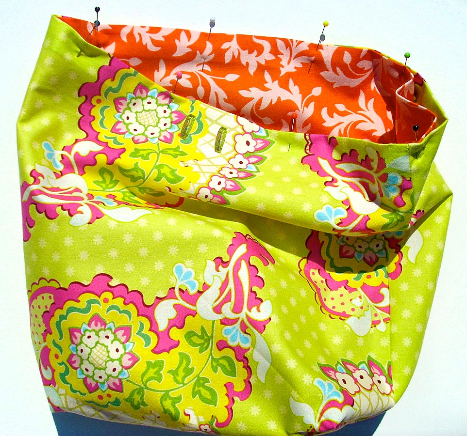- 1 yard coordinating fabric for liner: we used Heather Bailey’s Pop Garden & Bijoux Swirly Buds in Tangerine