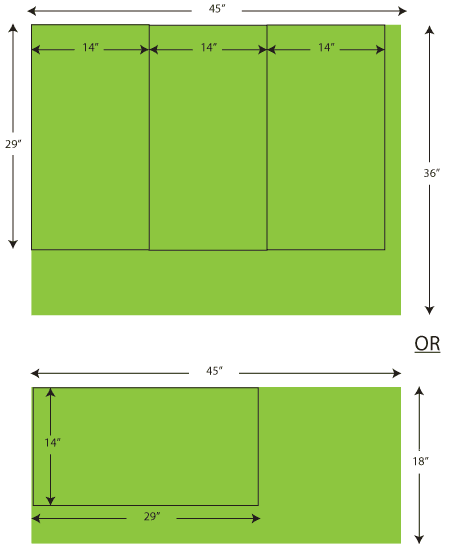 - Cut a rectangle 14″ x 29″ from both the main fabric and the liner fabric.