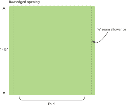 - Fold the bag pieces along the 17″ side, and then sew along one 8½” side, and up the long (17″) side. Press seams open and press a crease in the folded 17″ side.