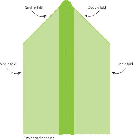- Open the bag and match the long seam with the long crease. As described above, the bottom of the bag will naturally fold in on itself, creating two matching triangles. Very carefully align the side folds and the top points to make sure your gusset will be exactly even.