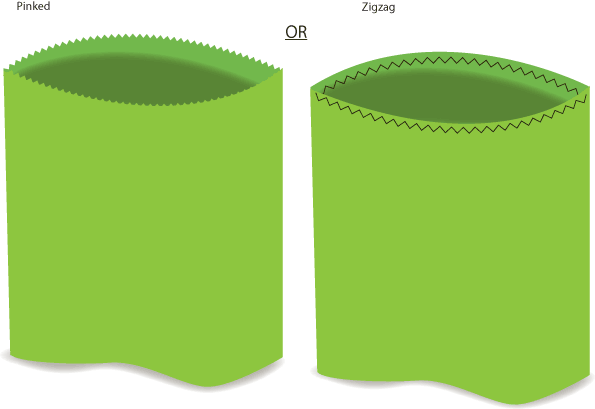 - Finish the raw edge of both the main bag and the liner bag with pinking shears or a zig zag stitch.