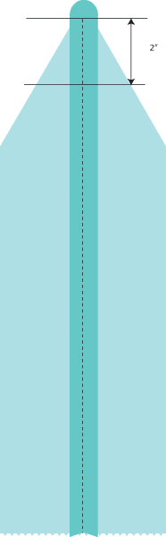 - Measure 1¾” from the top raw edge of the bag. The intersection of these two measurements designates the location of the TOP of the buttonhole.