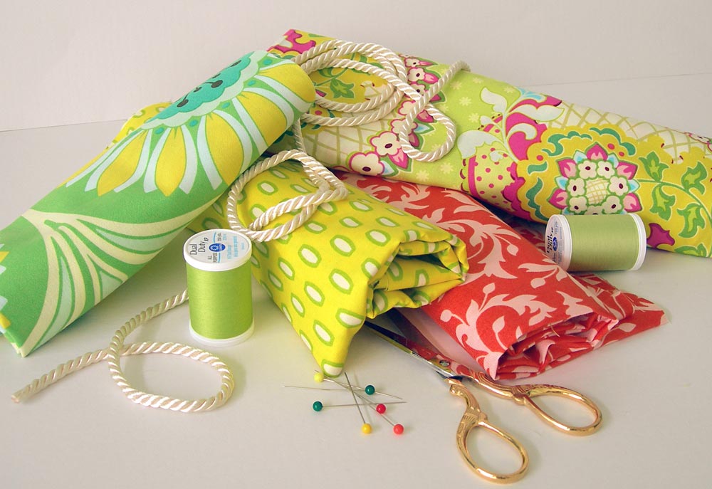 - 1 yard main fabric for bag: we used Heather Bailey’s Pop Garden & Bijoux Paisley in Lime