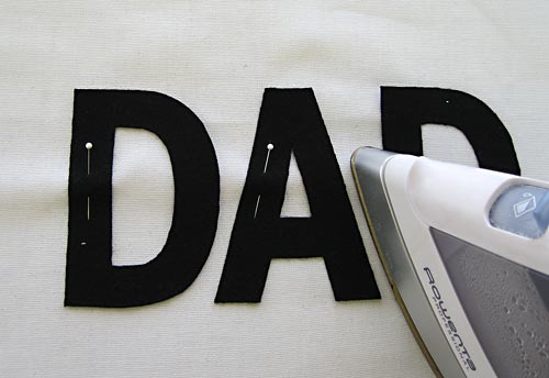 Your computer is also likely to have a wonderful selection of alphabet fonts from which to choose, which would be great for a monogram appliqué (that’s how we got our RMT monogram). You could also trace a silhouette image to reflect Dad’s favorite hobby, such as a pair of golf clubs, a fish, a tennis racket, or a running shoe.