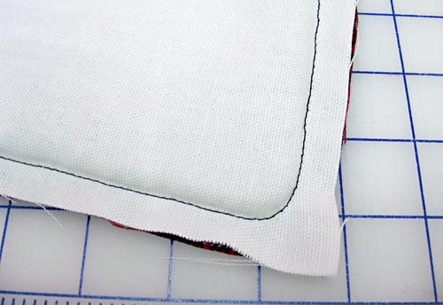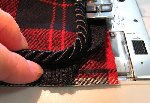 - Machine baste very close to the cord. Clipping the lip of the cording at each corner will help it curve around the corner.
