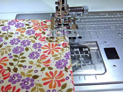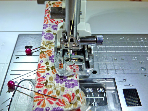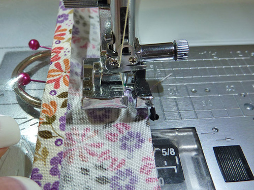 - Using a ¼” seam allowance, stitch the long side of each handle.