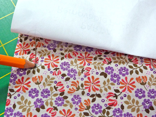 - Transfer all pin points onto the fabric with a fabric pen or pencil.
