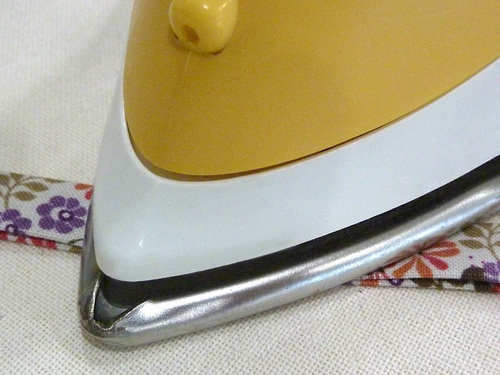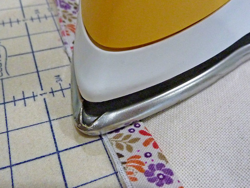 - Fold in each long raw edge ½”. Press well. Fold in one end ½” as well. The opposite end is raw.