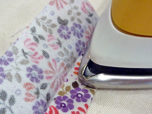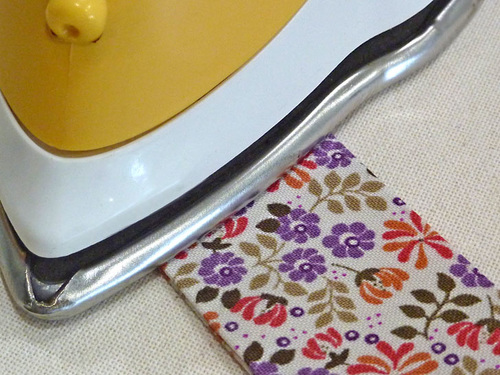 - From your remaining binding strip(s), cut TWO 5½” lengths. Fold back one long raw edge ¼” as you did above. In addition, fold back both ends ¼”.