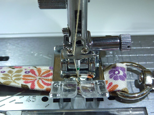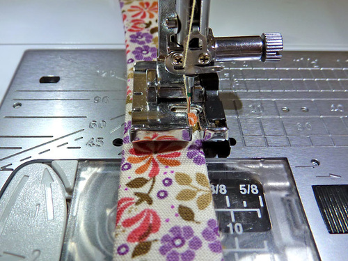 - Edgestitch along the folded edges to secure into the final 1” width. Remember to pivot at the one finished end to secure it as well.