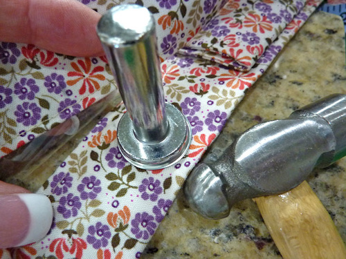 - Place the grommet cap into position and use the Setting Post and Anvil to hammer the two halves together. Set all four grommets in the same manner.