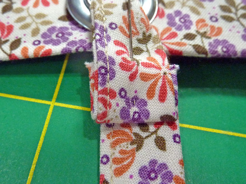 - On one side of the loop, mark for the two snap halves and two grommets. On the other side of the loop, mark for just the two grommets. The side with the marks for the two snap halves will be at the back of the tote.