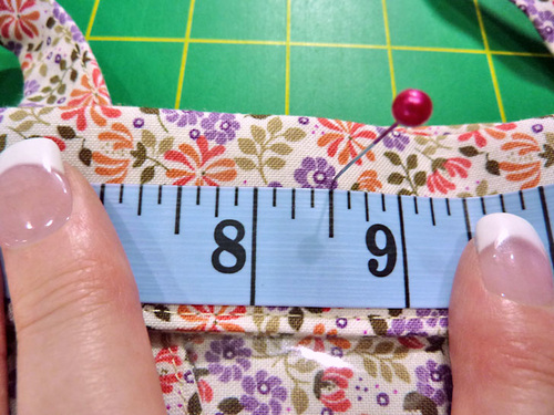 - Flatten the loop so the two seams are at each side. Measure to find the exact center points along the front and back of the loop. Insert a pin at these center points.