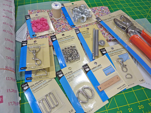 NOTE: We used Dritz products for all our hardware; follow our recommendations or find similar products. - TWO Dritz 8mm Double Cap Rivets in Nickel