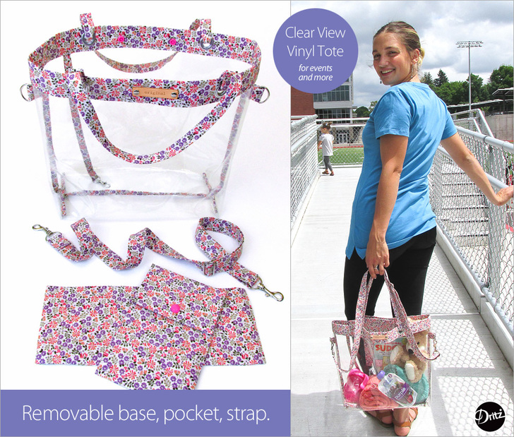 If you are in a situation where the tote is required to be completely see-through from every side, just lift out the base panel and un-snap the pocket. Ta-da – a clear-view of all the contents. This also creates a great water resistant bag to take to the beach or pool.