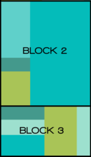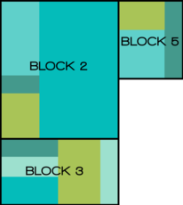 - Sew Block #2 to Block #3, aligning the bottom of Block #2 with the top of Block #3.