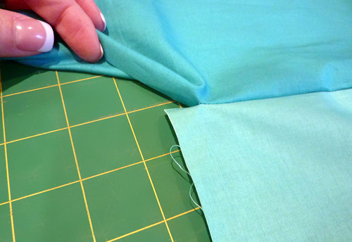 - Across one end of this 22″ three-panel unit, make a 2″ double fold hem. To do this, fold under the raw edge 2″ and press. Fold under an additional 2″ and press again.
