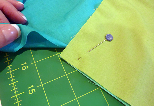 - With right sides together, pin a side panel to the left and the right of the center panel.
