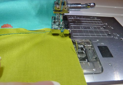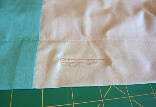 - Stop your seam ½” from the bottom. This will help later when you add Block #6.