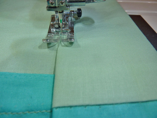 - Pin right sides together and then stitch along the TOP of Block #6 first.
