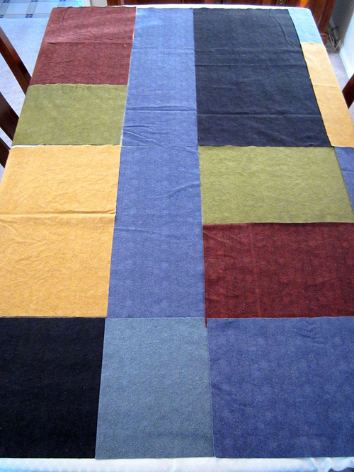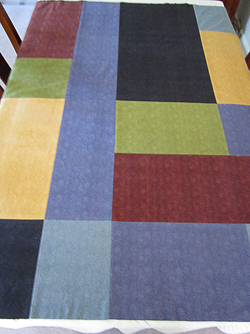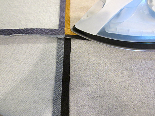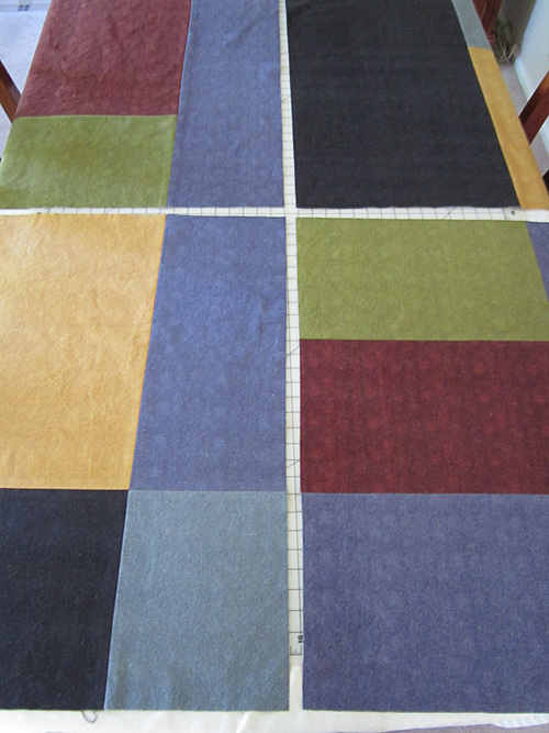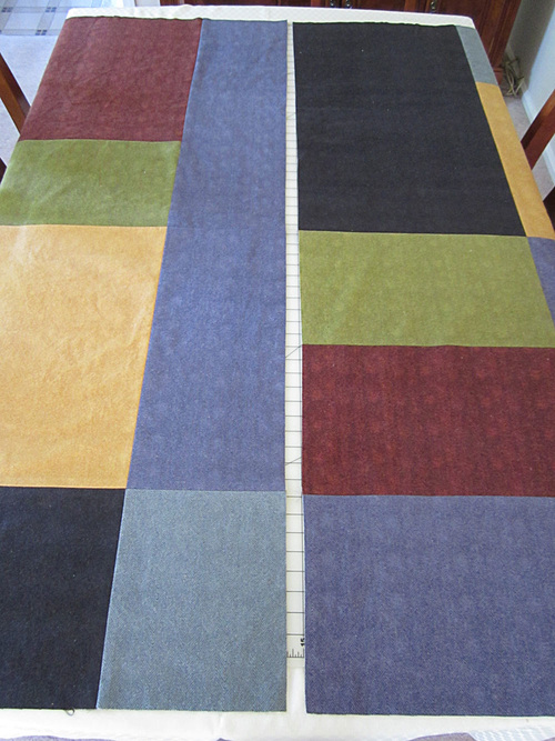 NOTE: All the seam allowances on the poncho are ½” rather than the more traditional ¼” seam for patchwork. However, with the tendency of flannel to ravel, we wanted the additional security of the slightly wider seam. - Press each seam allowance open and flat.