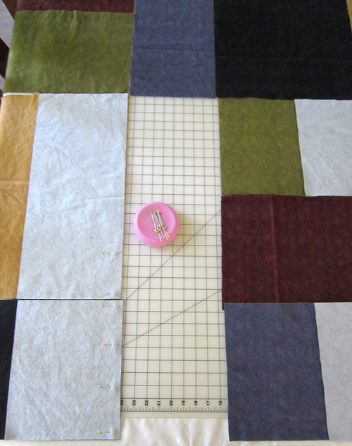 - Place the color block panel on top of the interlining, also right side up. Center the color block panel so there is an even amount of interlining extending beyond the it on all four sides.