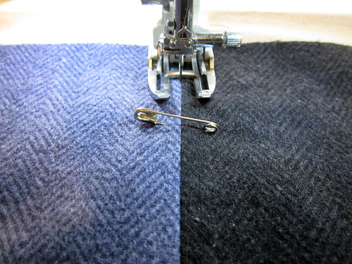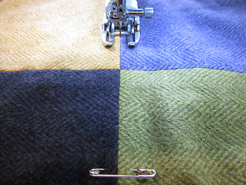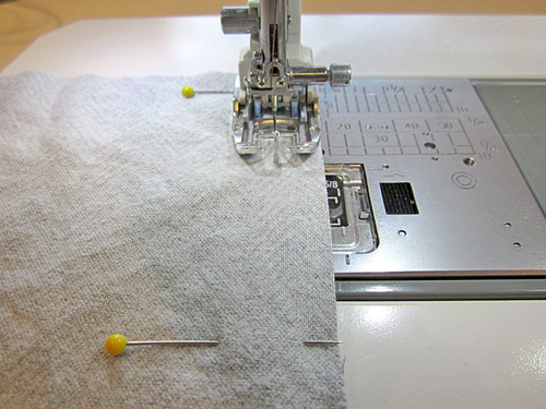 - Stitch “in the ditch” of each seam, removing the pins as you sew.