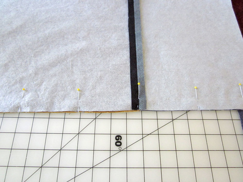 - Pin the two sewn panels together along the inner horizontal raw edges. Carefully align the vertical seams of the two panels.
