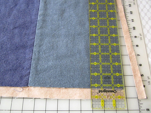 - Use a cutting mat and rotary cutter to trim and square the ends of each fabric.