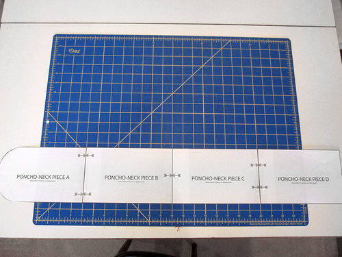 - Download and print out the Poncho Neck Cutaway pattern and the Rounded Corner Template. The Neck Cutaway pattern is four pages and the corner template is one additional page. These five pages have been bundled into one Poncho Patterns PDF to make the download easier.