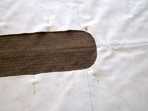 - Still working on your nice, large (and clean) surface. Lay out the interlining panel right side up and flat.
