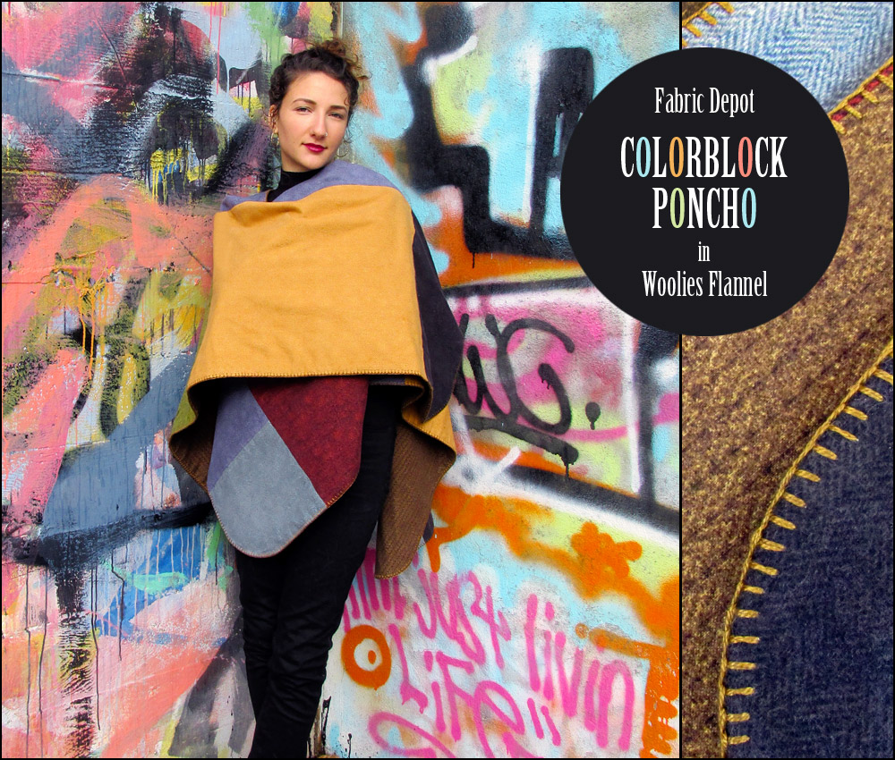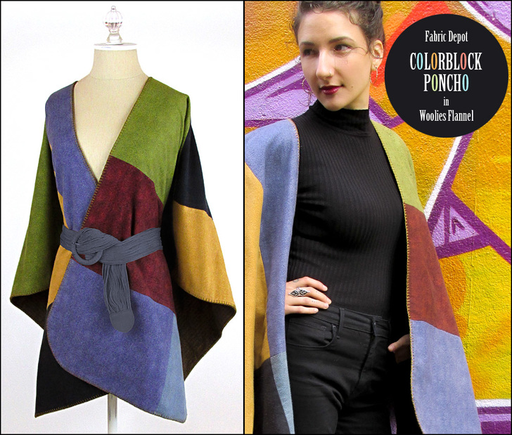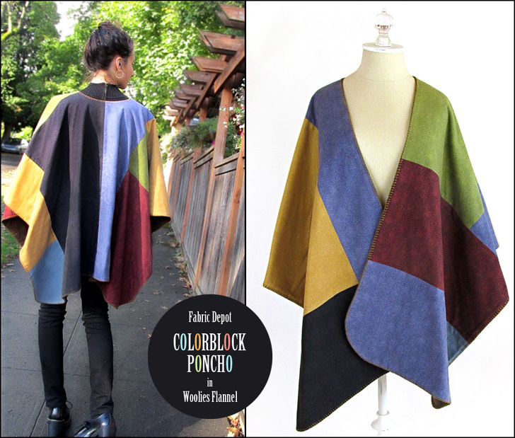 The exterior of the poncho features the color blocking, the interior is one solid color, and between these two layers is another secret interlining flannel. With three layers of this substantial flannel, the weight and drape are excellent. You’ll stay nice and toasty when you’re out amongst the swirling leaves.