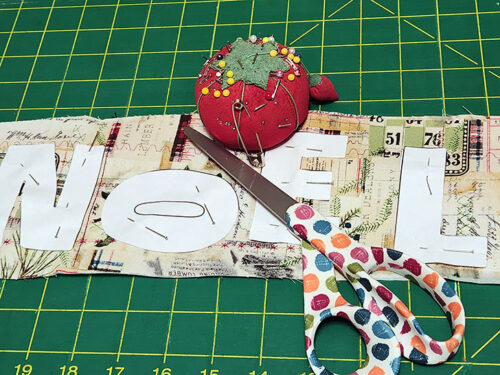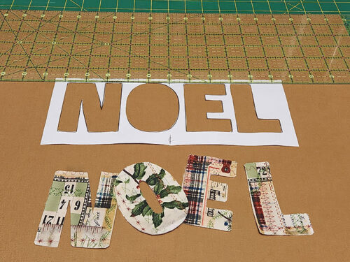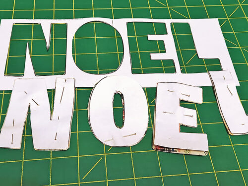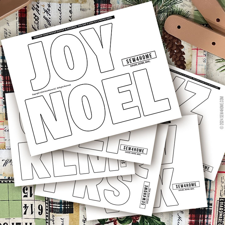 - Download and print the appliqué templates. We offer the two “seasonal words” we used on our samples: NOEL and JOY along with a full alphabet so you can build your own words or names.