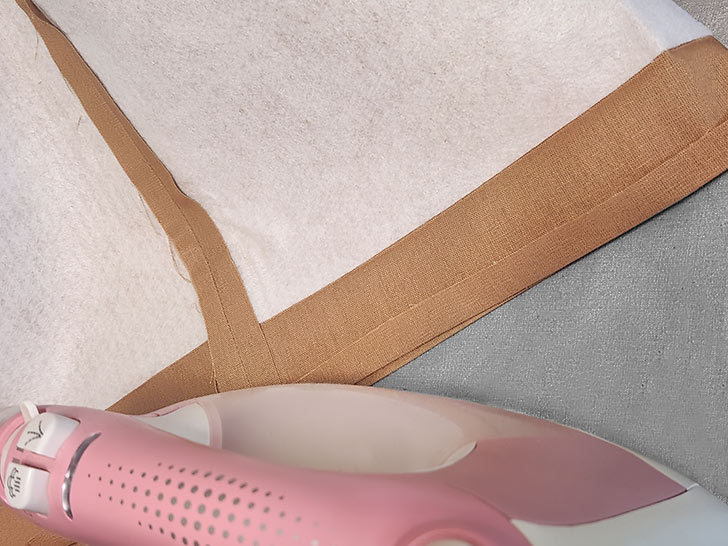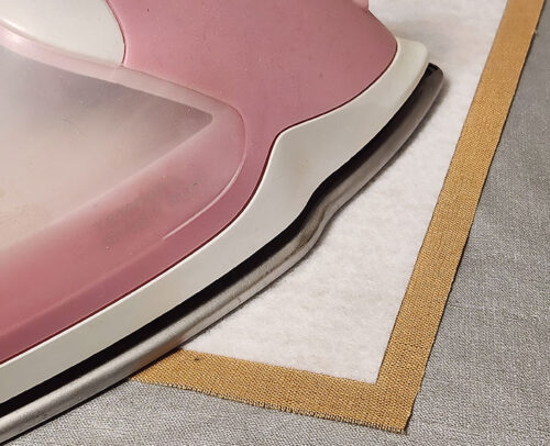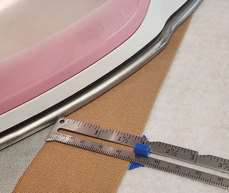 - Then fold down an additional 2” and press again. Make sure your top fold is sharp and even; you will unfold it to drop in the lining and want to be able to easily see and re-fold along the original crease line.