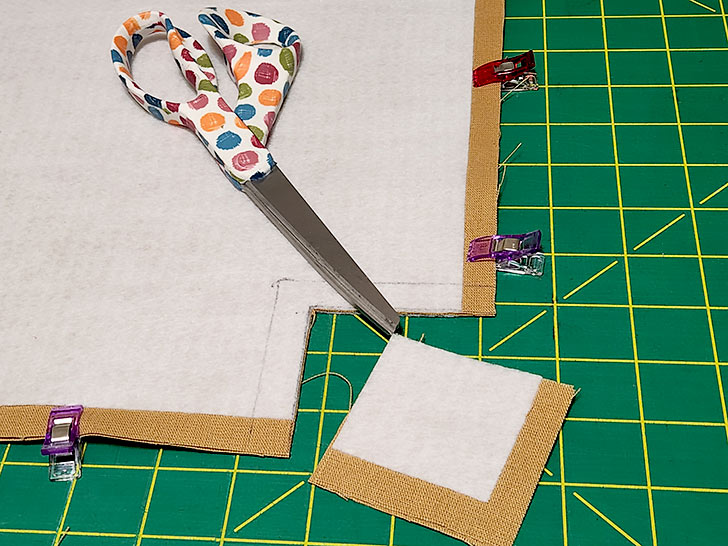 - Using a ½” seam allowance, stitch the side and bottom seams separately (because you just cut away the corner where you would have pivoted!).