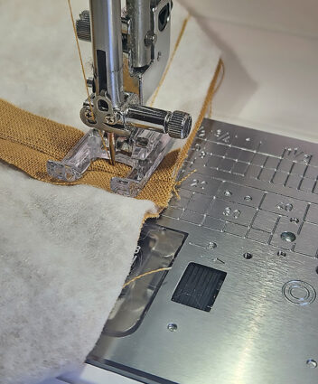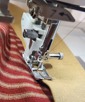 - Re-set the machine for the final topstitching. This stitch line will be very visible so you need to make sure you are set up for precision. We recommend using an Even Feed or Walking foot; or engaging your machine’s built-in fabric feeding system, such as the Janome AcuFeed™ Flex system, which is what we used.