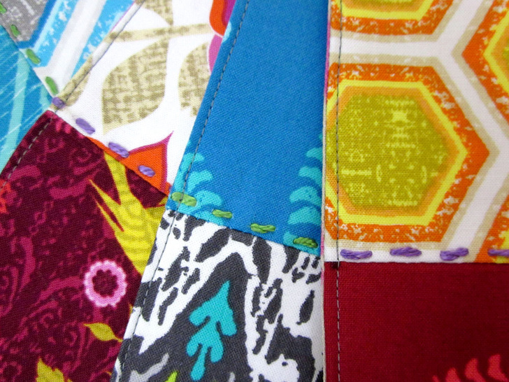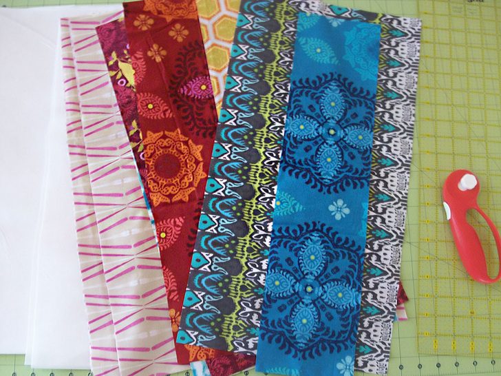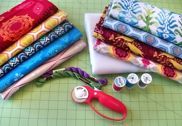 We originally used fabrics from Ty Pennington’s Fall 2012 Impressions collection, which is no longer readily available, but there are always gorgeous new quilting cottons coming out from which to choose. This would also be a great project to use up some of the large pieces in your scrap stash, and a great way to practice fussy cutting!