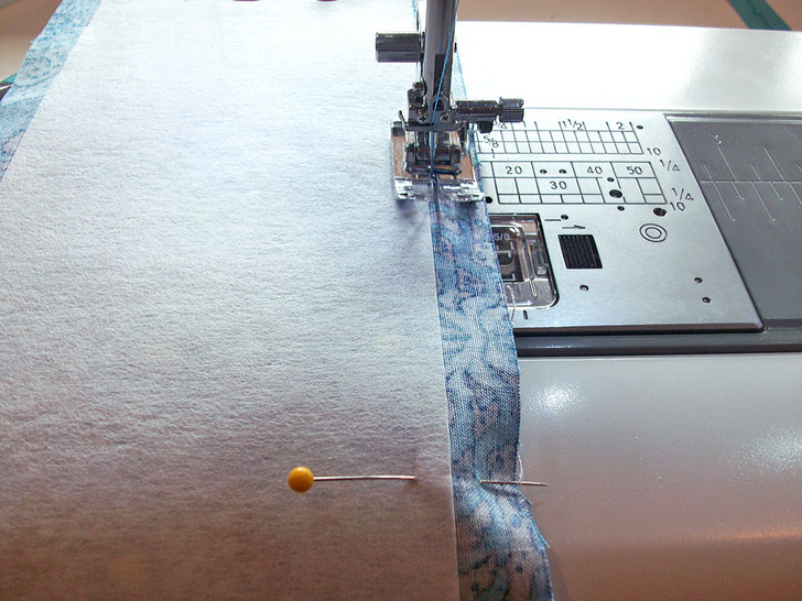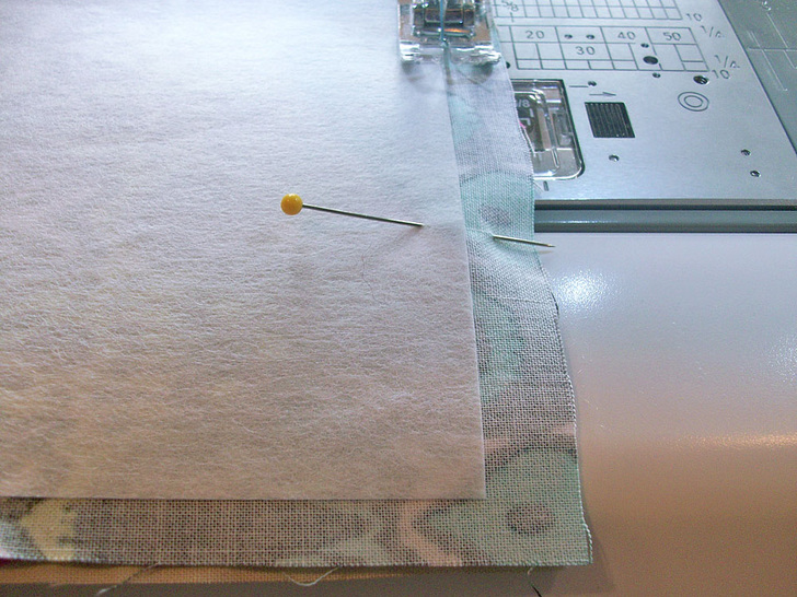 - Pin in place around all four sides, leaving a 3 – 4″ opening along the bottom edge.