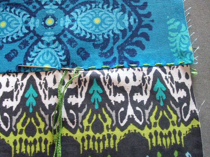 - Hand stitch, using a simple running stitch, across the placemat within the bottom panel, staying approximately ⅛” from the seam.