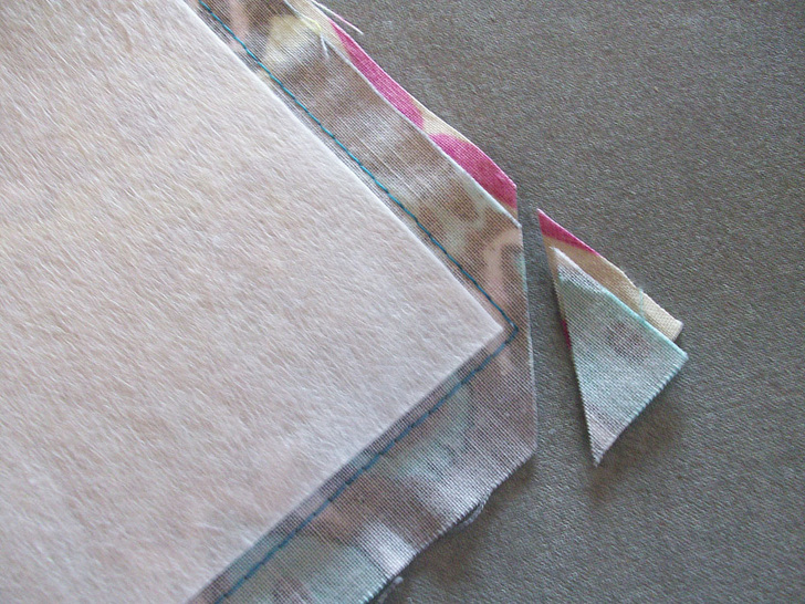 - Clip all four corners of the placemat on the diagonal, being careful to not cut into your seam.