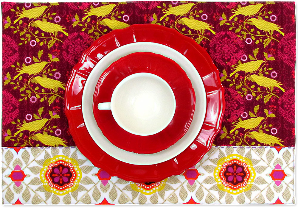 NOTE: The large, flat surface of a placemat provides a great opportunity to showcase bold motifs. We carefully fussy cut all our fabric to take best advantage of each pattern. As mentioned above, if you are new to fussy cutting, check out our step-by-step tutorial.