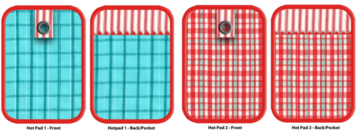 1. Download and print TWO EACH of the TWO patterns: Hot Pad Front and Hot Pad Back (Pocket).