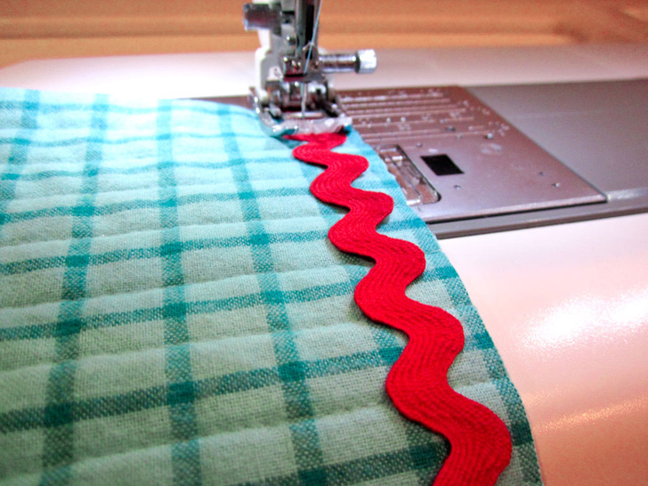 9. Machine baste the rick rack in place.