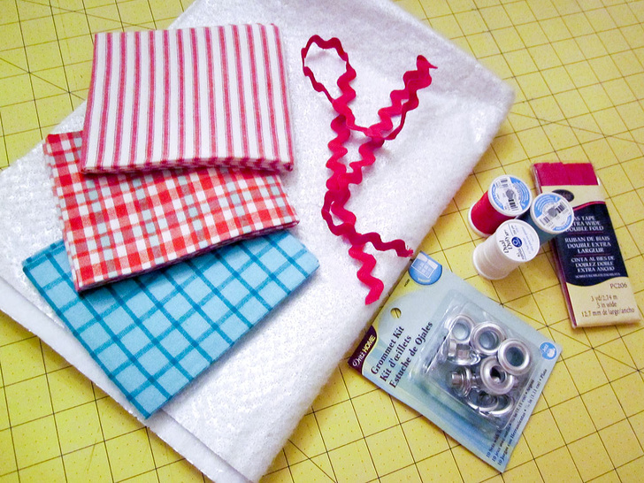 • Two 1 – 1.1 cm metal grommets with a grommet tool; we used a Dritz Home Nickel Plated Grommet Kit