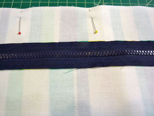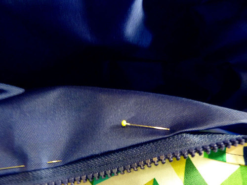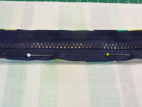 - Pin the lining in place along each side of the zipper.