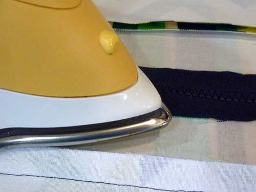 - Press both seam allowances toward the zipper unit. Be careful not to place the iron directly against the zipper for any length of time; you could melt the plastic teeth.