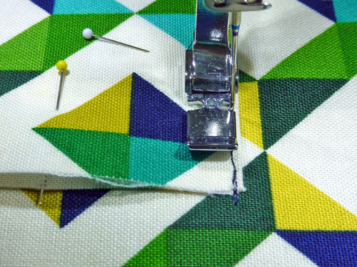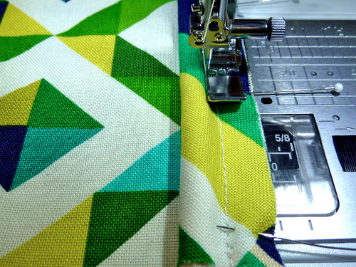 - Using a ½” seam allowance and your standard presser foot, stitch across the bottom edge. We double stitched for extra security on this important seam.