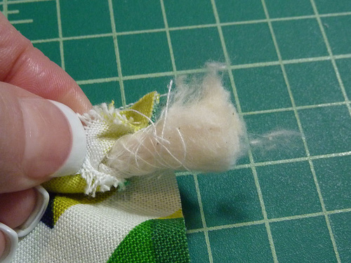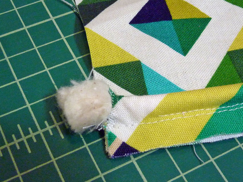 - At each end of each side, there should be about ½” of piping cord extending beyond the fabric.